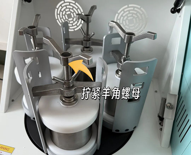 1、研磨過程研磨罐對稱放置,擰緊羊角螺母,注意安全。
