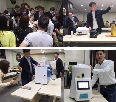公司也推薦了幾位老銷售現場演示,然后由新員工演練,大家一起給建議,提升各個銷售員的產品知識及銷售技巧。現場演示了新款毛發處理儀、三維離心冷凍研磨儀、浸入式液氮冷凍研磨儀、全自動錘式旋風磨......
