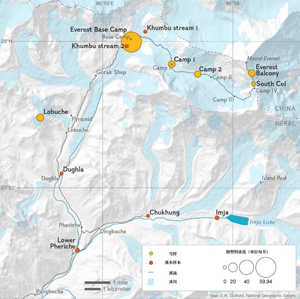 報道稱,“污染嚴重的樣本來自位于尼泊爾境內的珠峰大本營,那里是珠峰上人類活動較集中的地方。每公升積雪含有79個微粒。取樣地點位于海拔8440米處,即位于珠峰峰頂下方408米處,該樣本中每公升積雪含有12個塑料微粒。在珠穆朗瑪峰上發現的微塑料大都源自合成纖維,包括聚酯纖維和丙烯酸纖維,系制作登山者衣服和裝備所用的材料。”