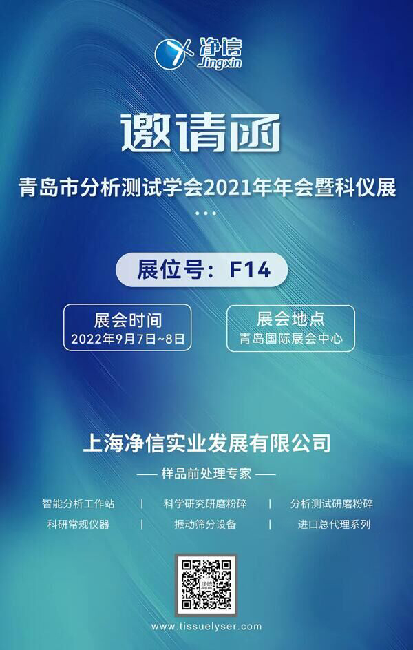 參展詳情:上海凈信很榮幸能夠參加本屆報告會,與全國各地的學者、老師共聚一堂,在分析測試的樣品制備和相關儀器上進行更深入的交流。在此,上海凈信誠邀您蒞臨F14展位,分享您寶貴的經驗,讓上海凈信能夠更好地為科研服務。