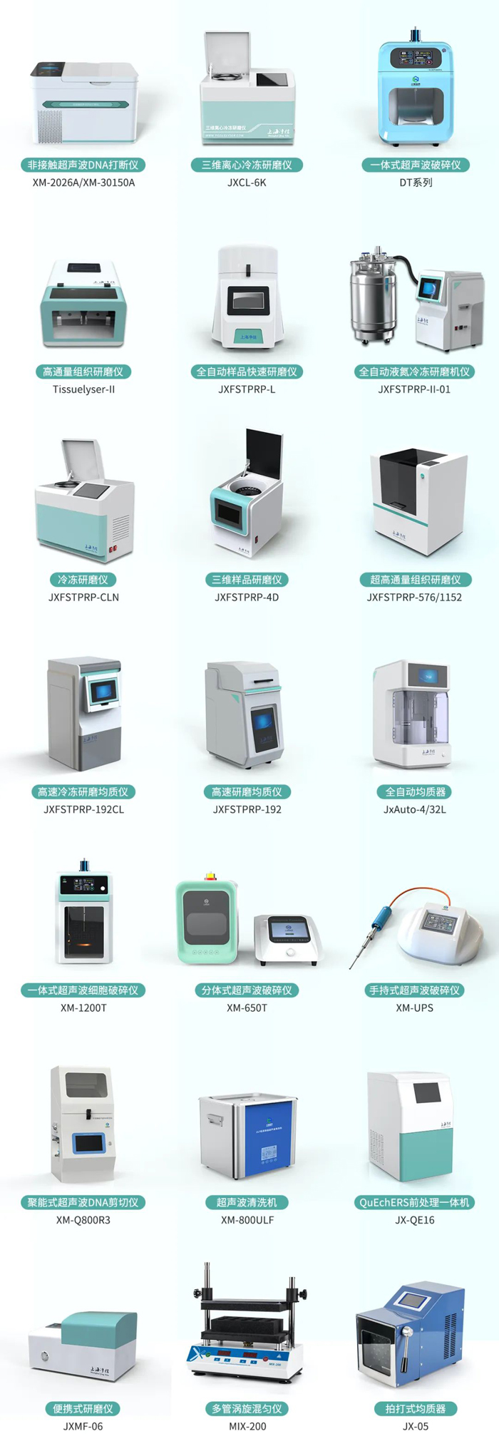 分子生物學是生物學的前沿與生長點,其主要研究領域包括蛋白質體系、蛋白質-核酸體系(中心是分子遺傳學)和蛋白質-脂質體系(即生物膜)。上海凈信的非接觸超聲波DNA打斷儀、三維離心冷凍研磨儀、一體式超聲波破碎儀等多款儀器可應用于細胞與分子生物學領域的研究。
